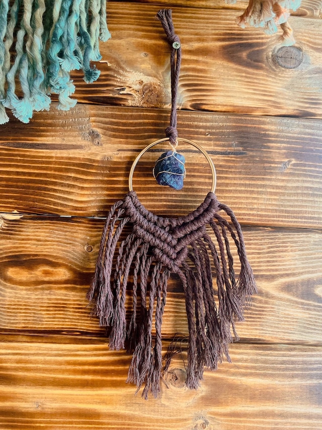 Spirits Charm* Mini Tapestry – Lapislazuli 糸の陰影とラピスラズリの質感が静かに際立つ、 小さなタペストリーです。 空間の片隅や、窓辺や車内、旅の持ち物としてなど、 日常の空間にそっと添える“静かなアクセント”として制作しました。 中心にはラピスラズリを組み合わせています。 密度のある質感が、作品全体をぐっと引き締めてくれます。 同じ石の形はなく、一点ものとなります。 ◆ SIZE 直径7×全長18cm前後(掛け紐除く) ◆COLOR カーキ ◆STONE ラピスラズリ 色違い・石違いも出品しています。 一覧ページよりご覧いただけます。 ▼すべてのミニタペストリーはこちらから https://rutilus.official.ec/categories/7075933 ------------------------------------ 「手のひらサイズの物語」 Spirits Charmは、 身につけるもの、空間に添えるものを通して、 日常に小さな余白をつくるシリーズです。 意味を決めすぎず、 色や形、結びの感触で選ぶこと。 その人の時間の中で、 自然と役割が生まれていく存在であってほしいと考えています。 Spirits Charm一覧はこちら↓ https://rutilus.official.ec/categories/7075921