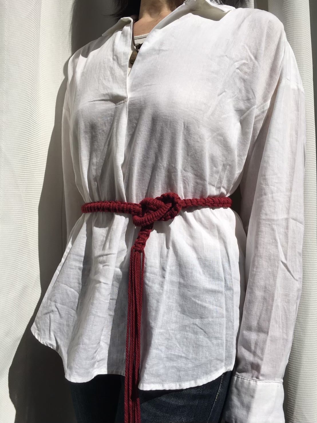 コーディネートに自然なアクセントと奥行きを与えてくれるマクラメベルト。
