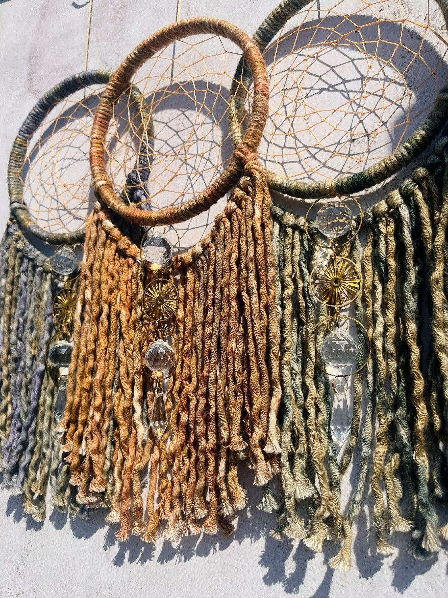 koo macramé様に染めていただいた、柔らかく上質な手染めロープは、ブラウン系・グリーン系・ブルー系の3色展開(各1点)です。