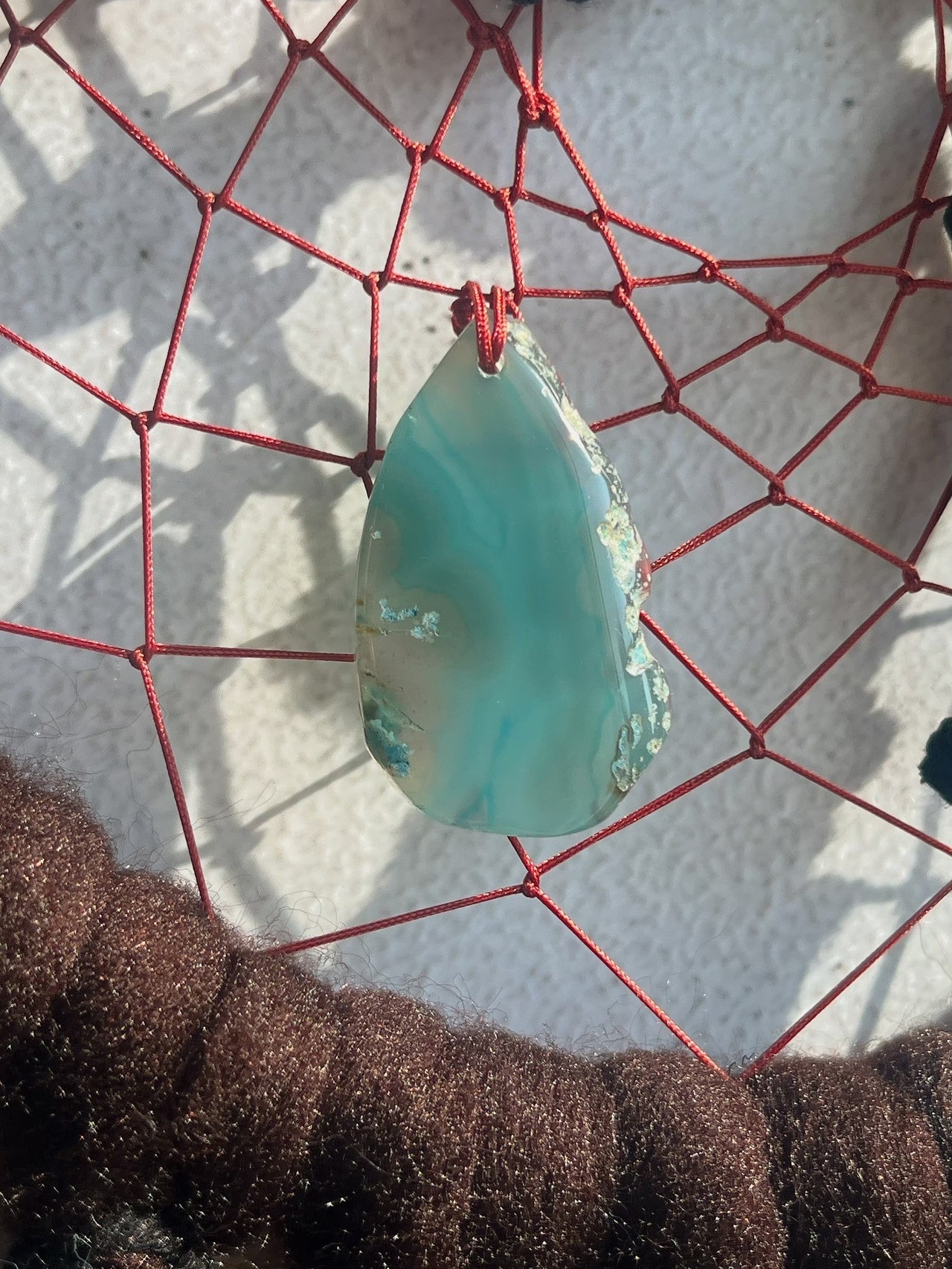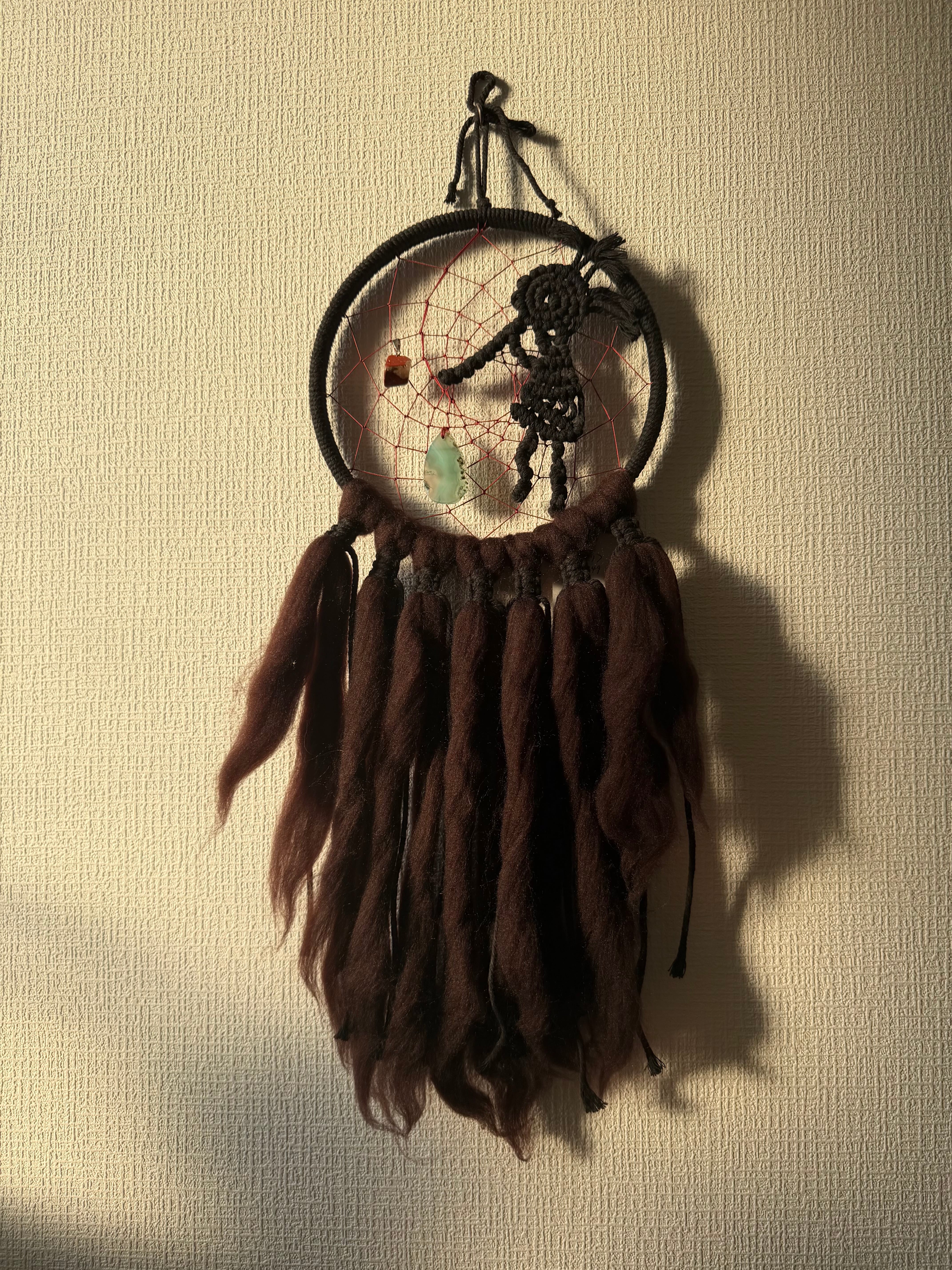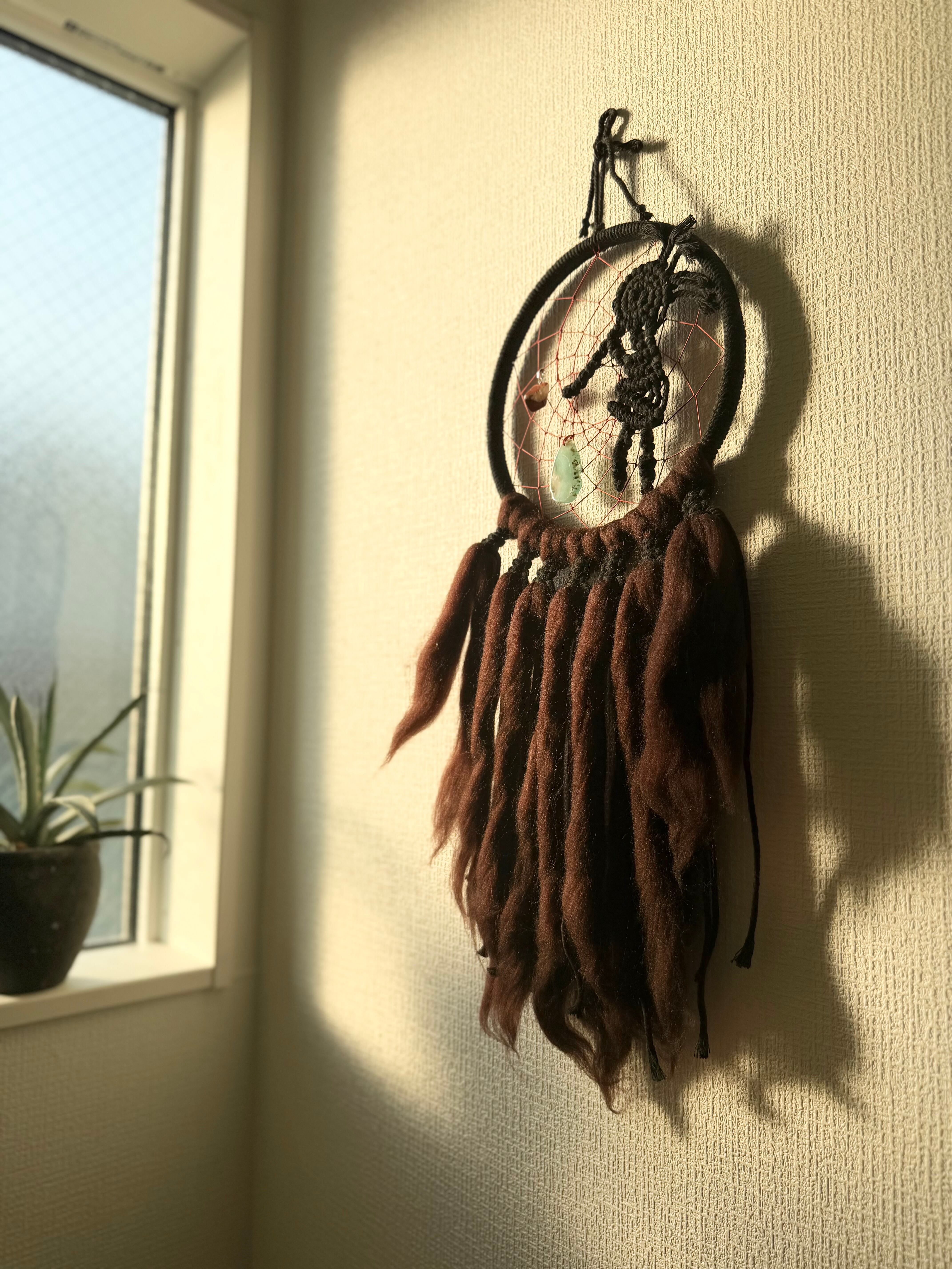 瑪瑙を合わせ、チャンキーヤーンでネイティブ感を表現しています。