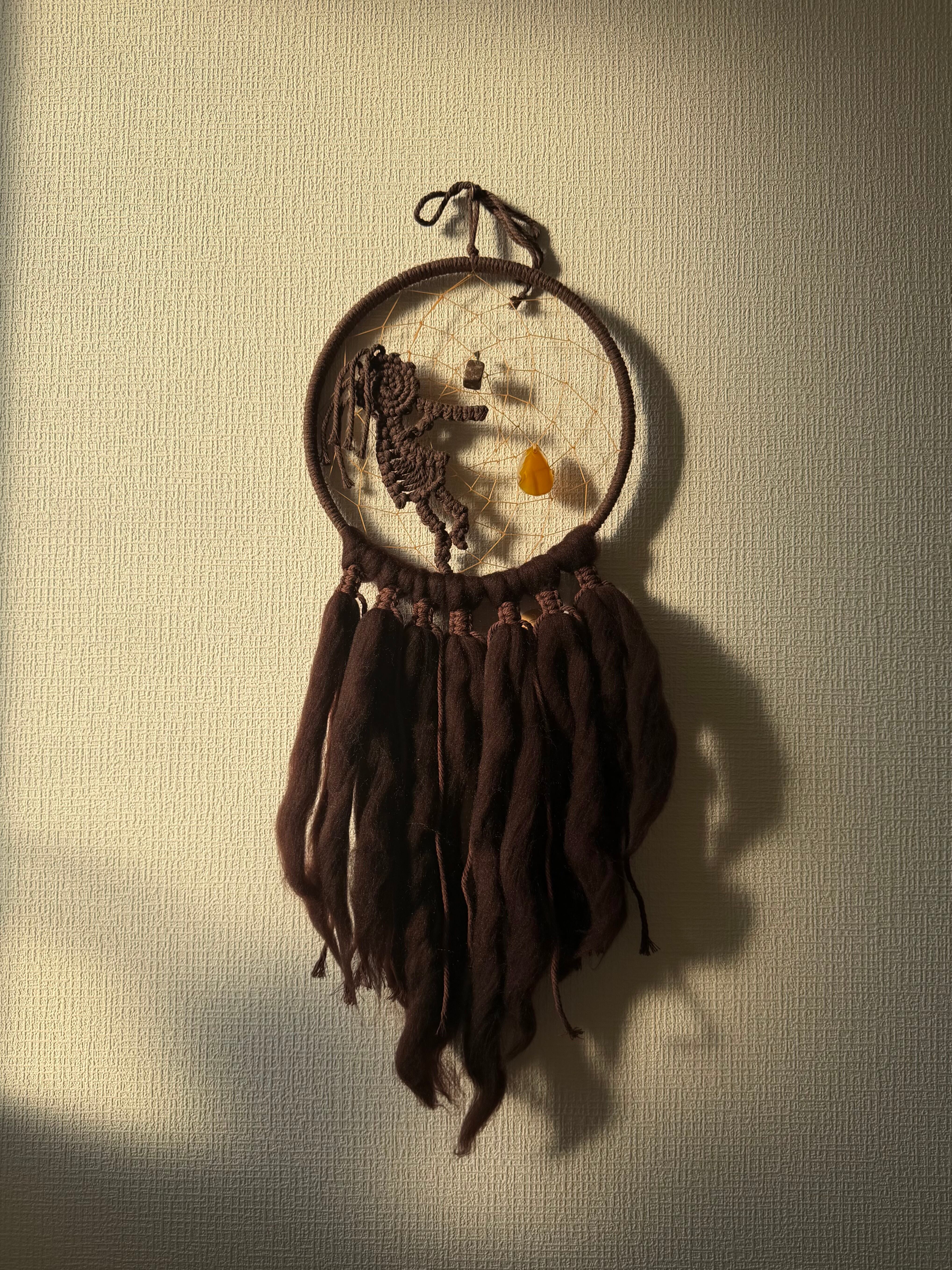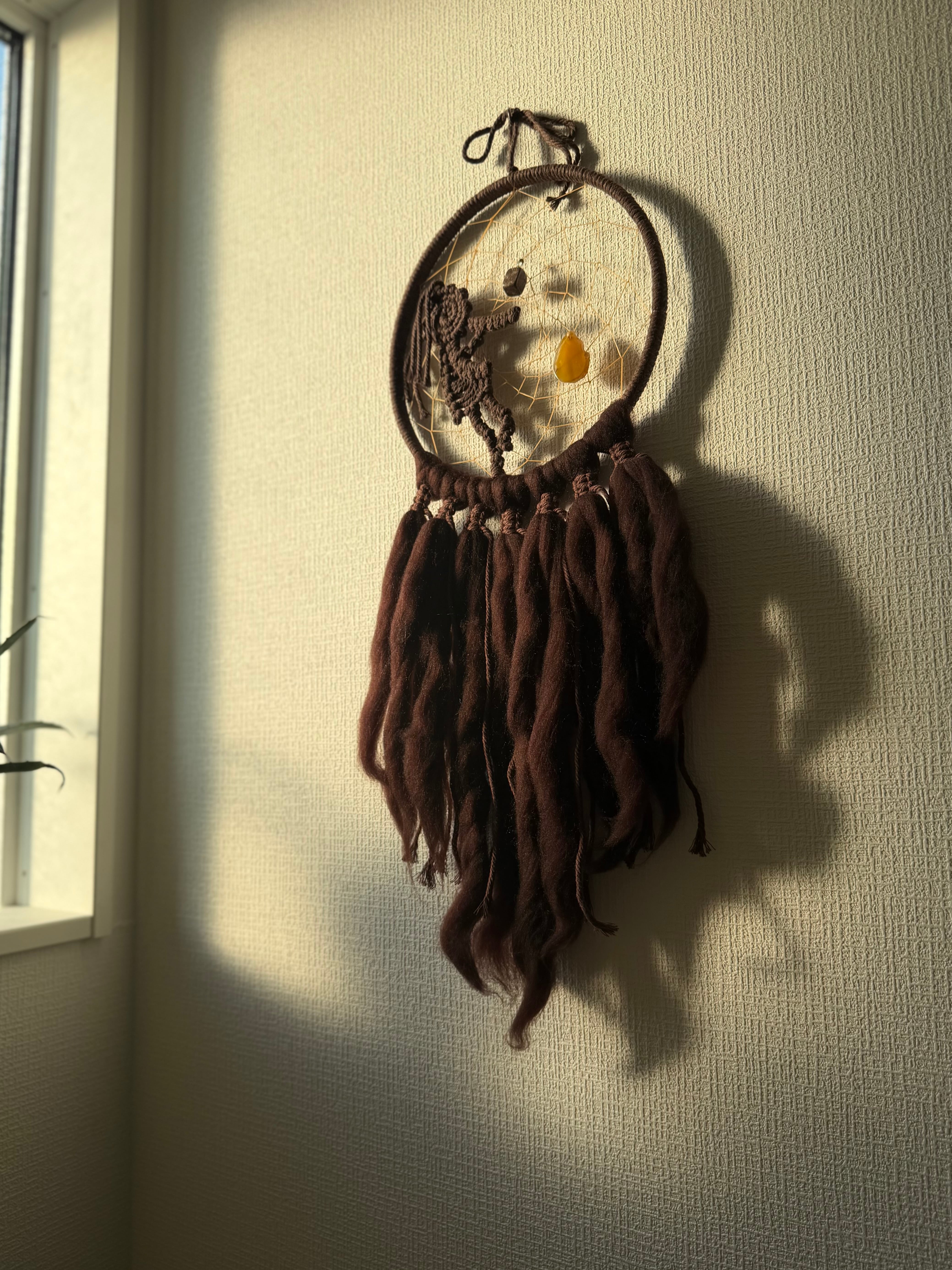 瑪瑙を合わせ、チャンキーヤーンでネイティブ感を表現しています。