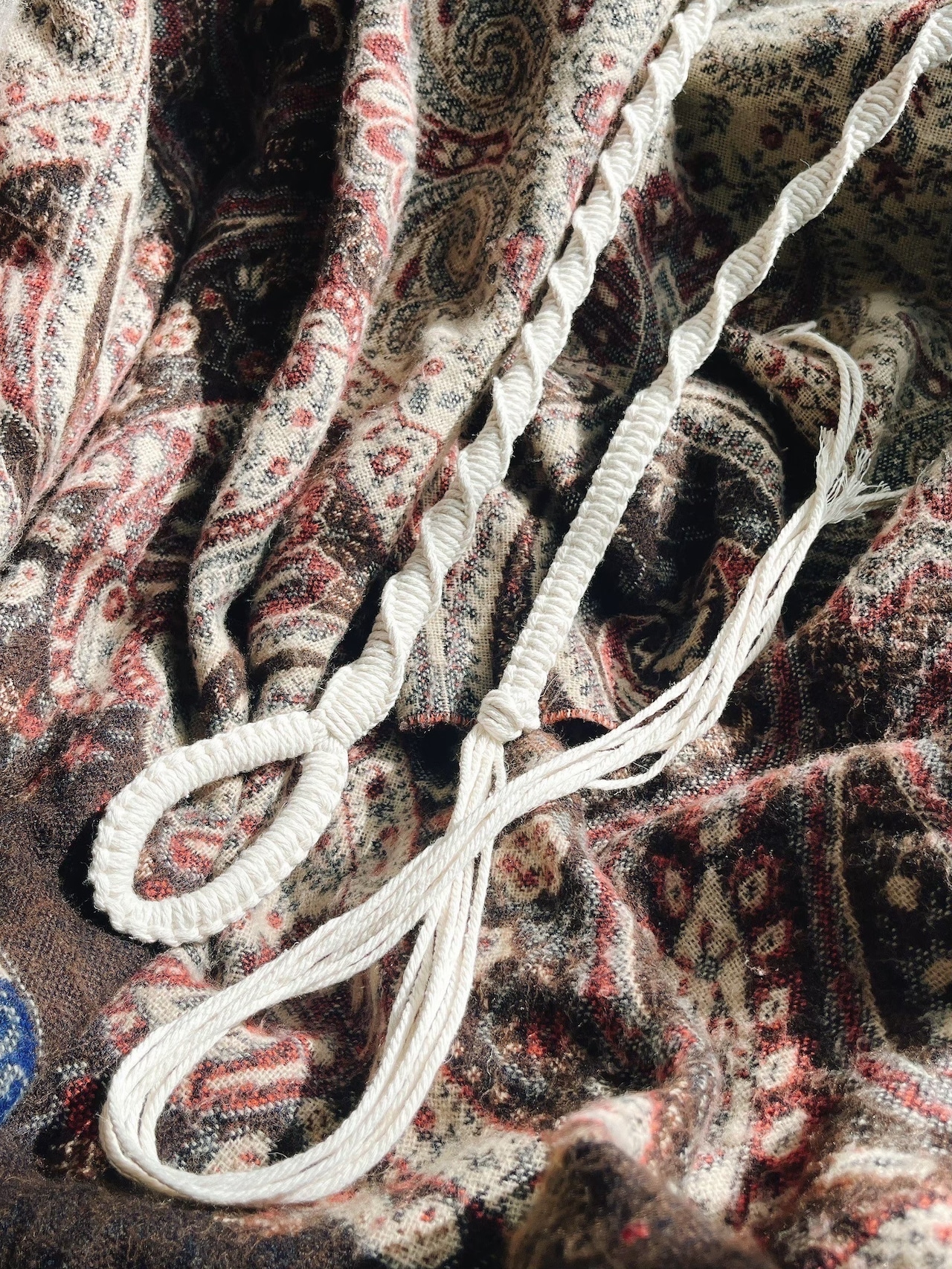 シンプルな佇まいのマクラメベルト。