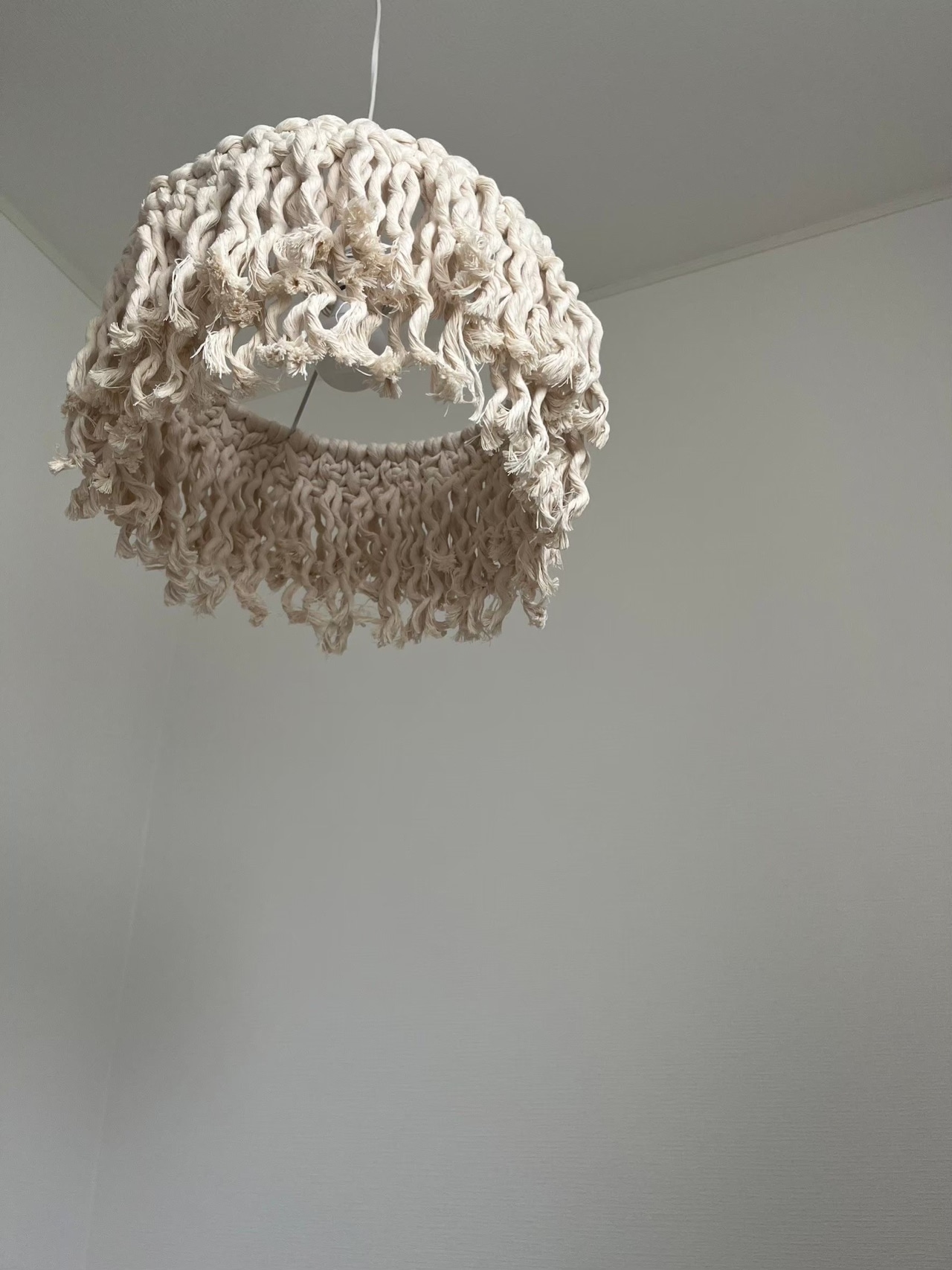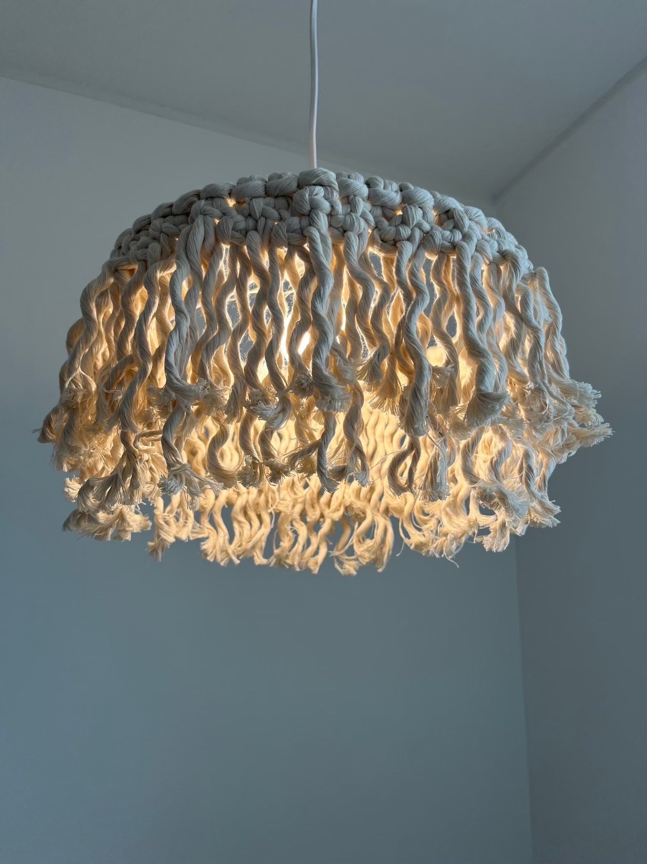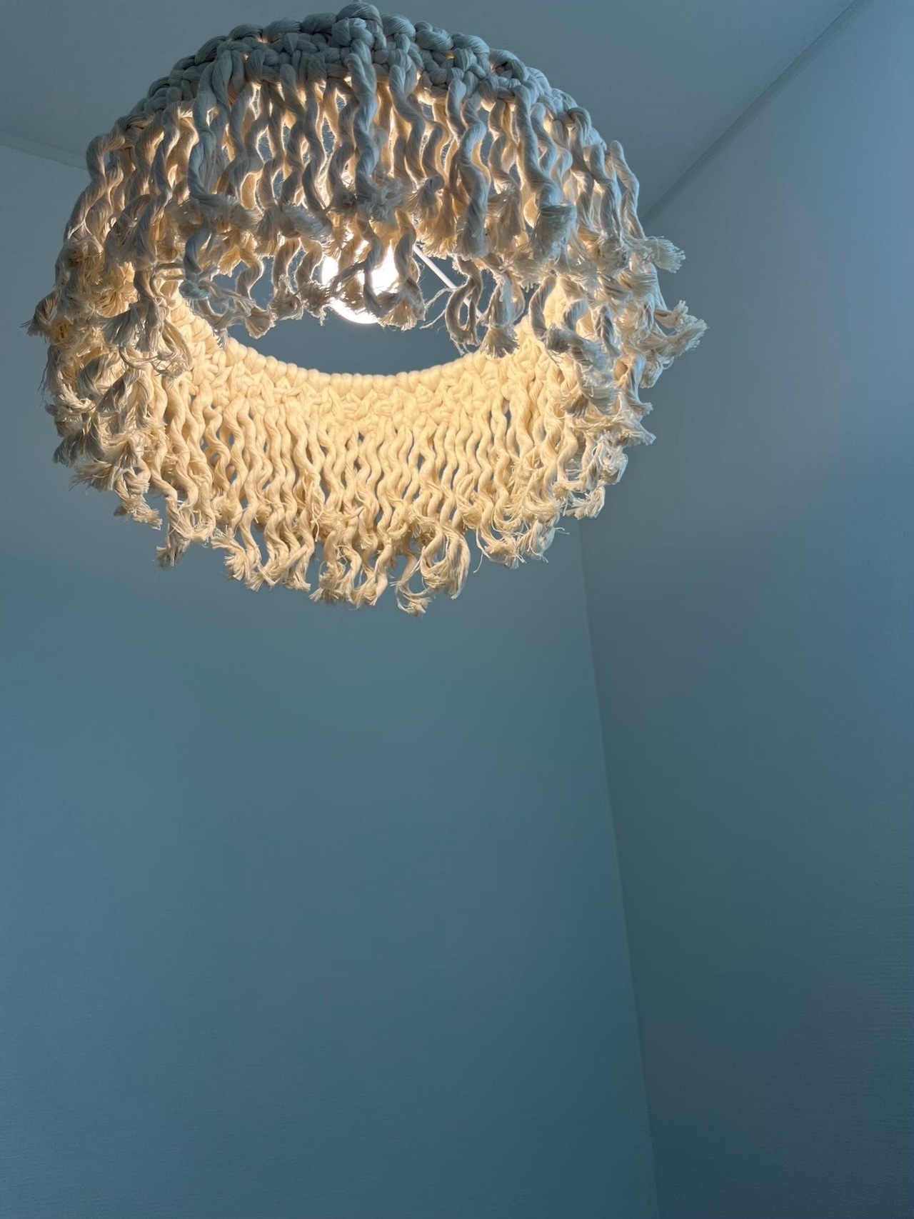 点灯時にはマクラメの隙間から柔らかな光が広がり、