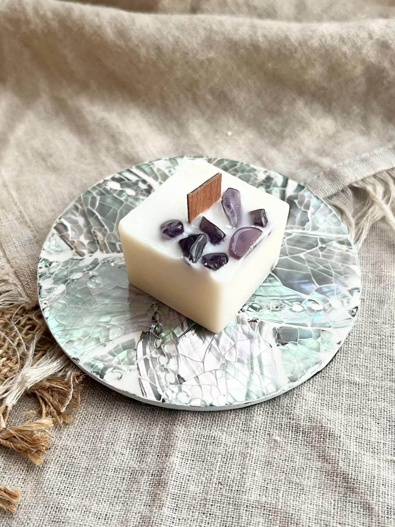 装飾には、各種天然石のさざれを使用。