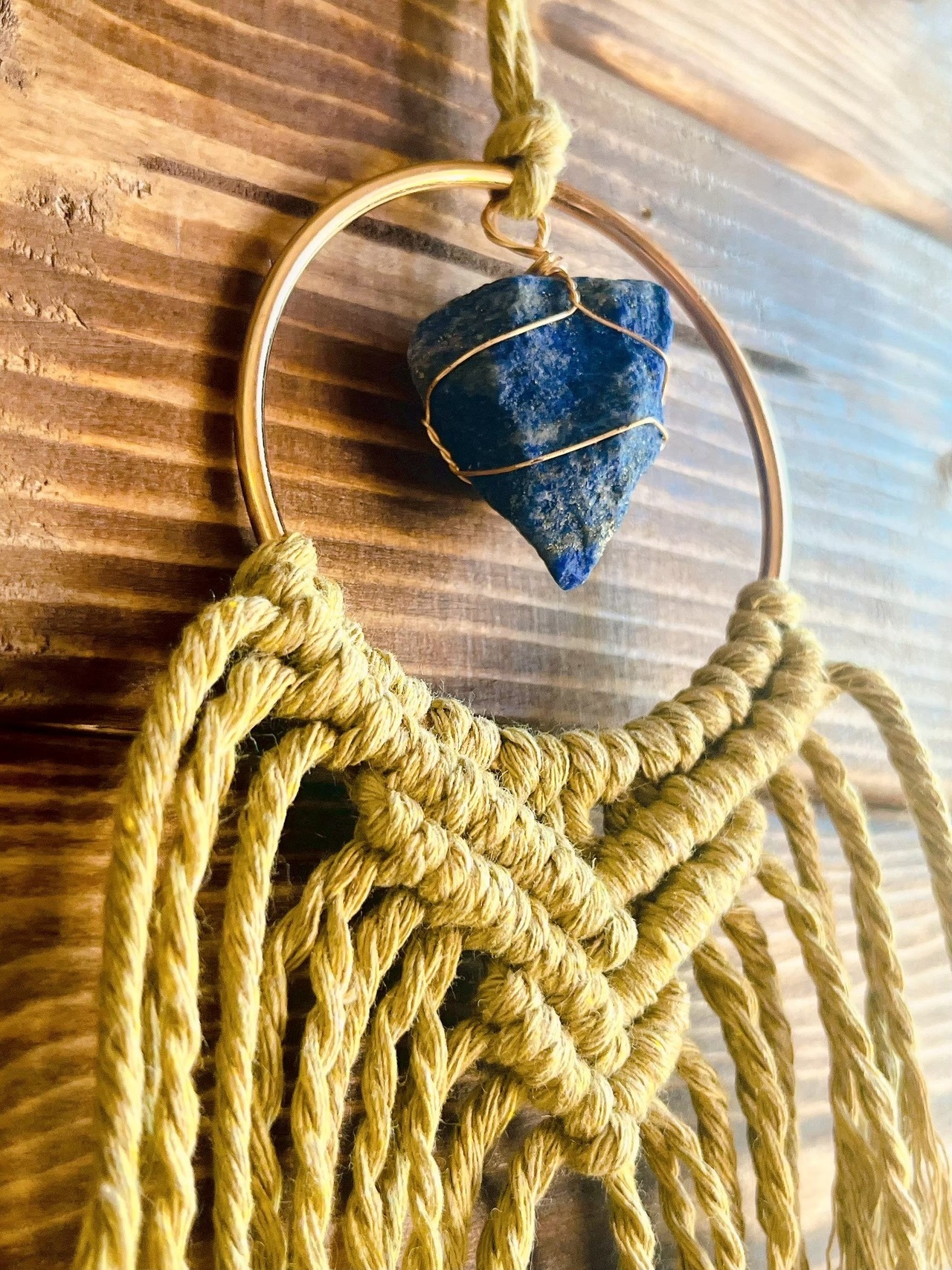 糸の陰影とラピスラズリの質感が静かに際立つ、