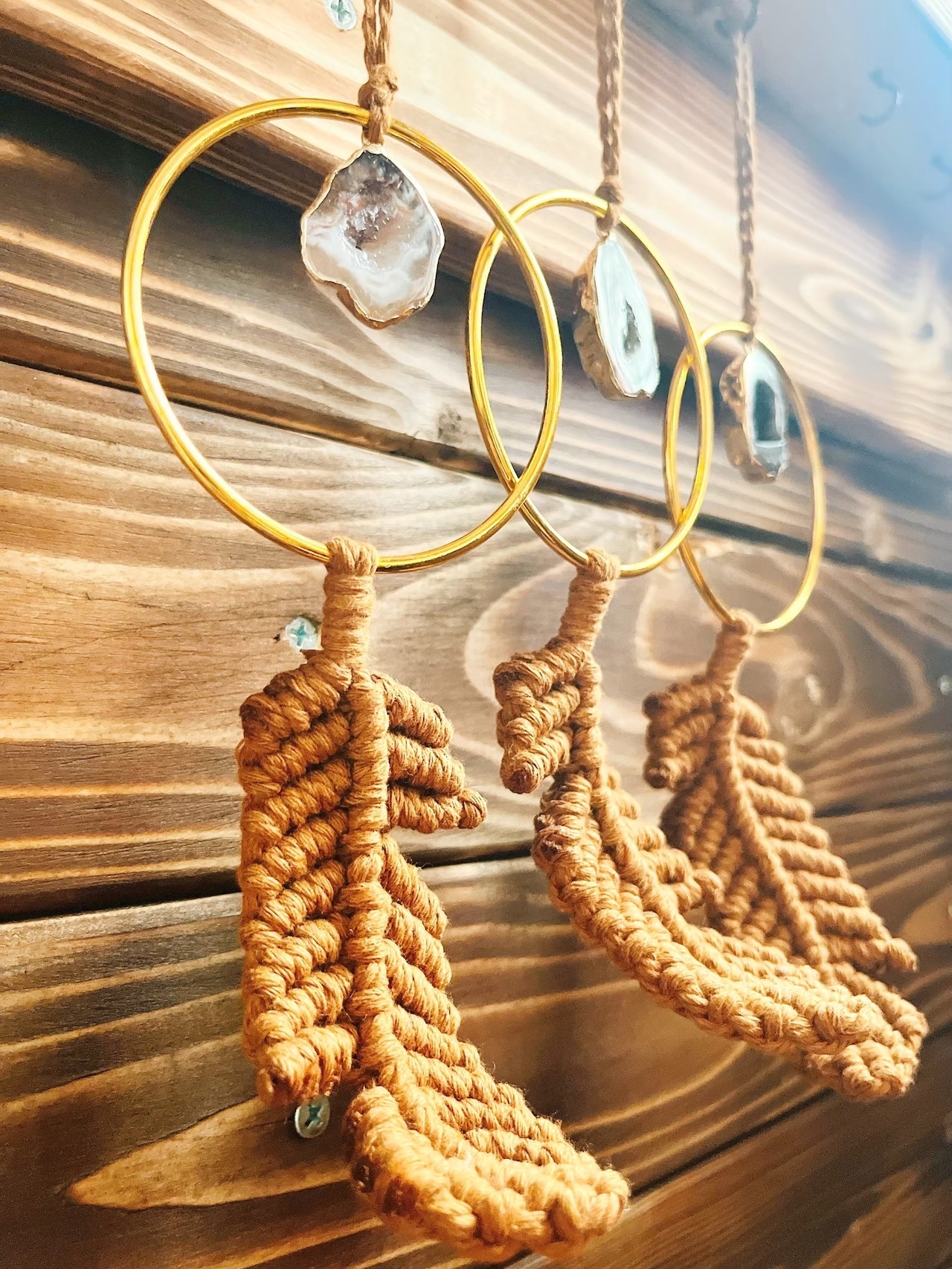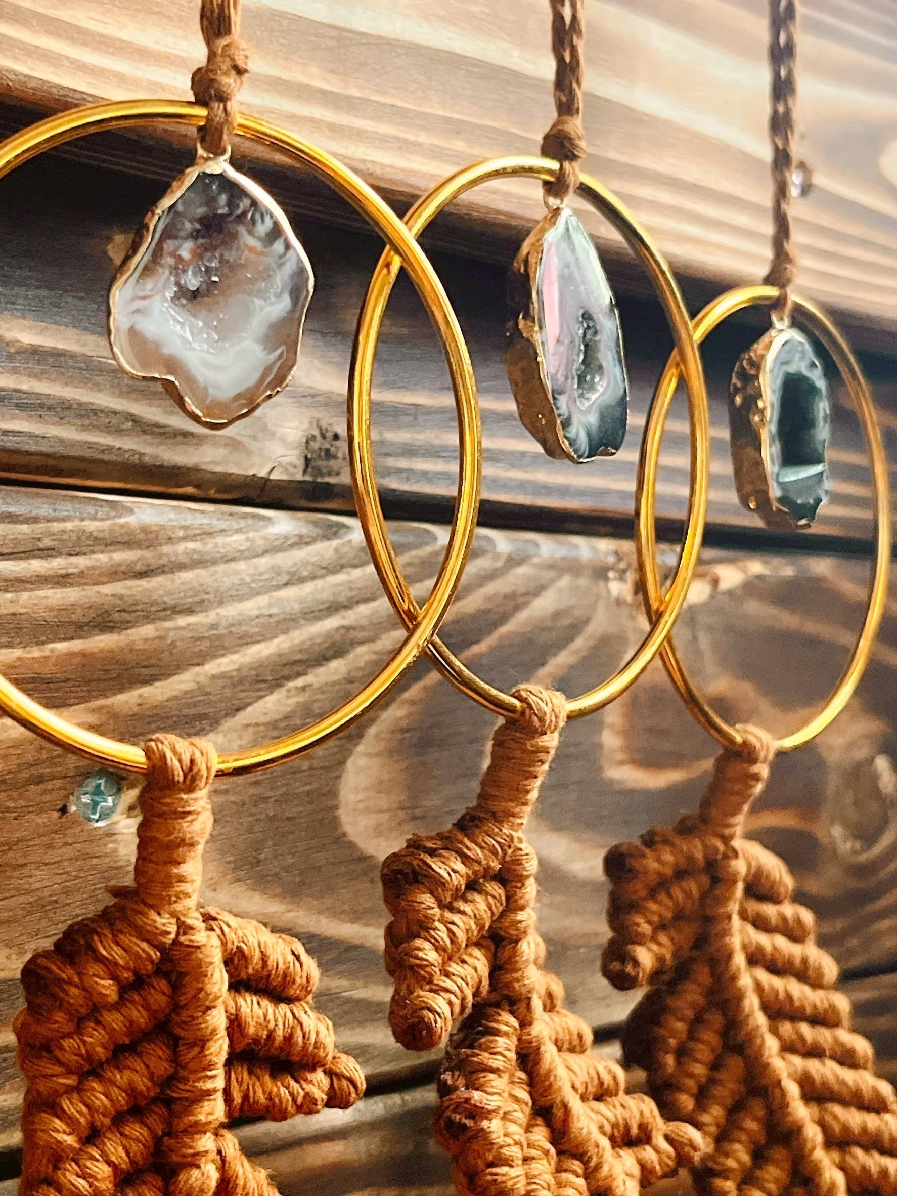 糸の陰影とアゲートスライスの質感が静かに際立つ、