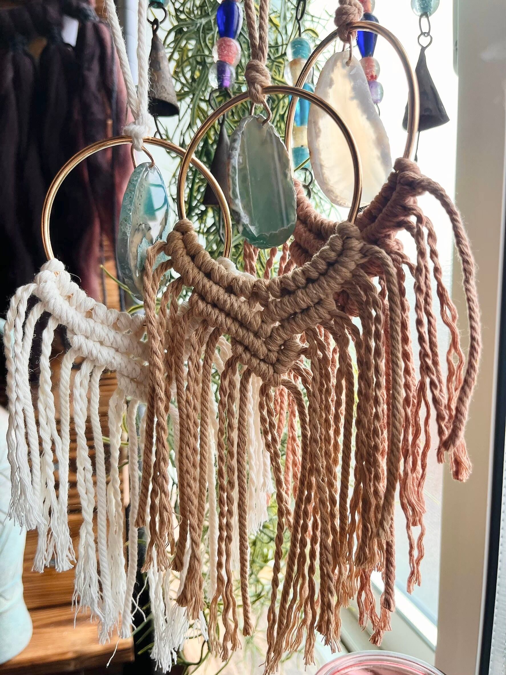 糸の陰影とアゲートスライスの質感が静かに際立つ、